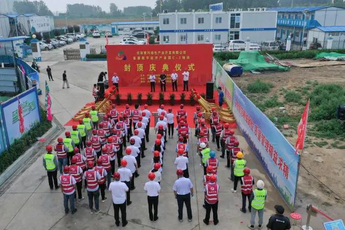 黃河綠色產業公司起步區崔寨數字經濟產業園C-2地塊租賃住房項目部分樓座順利實現結構封頂