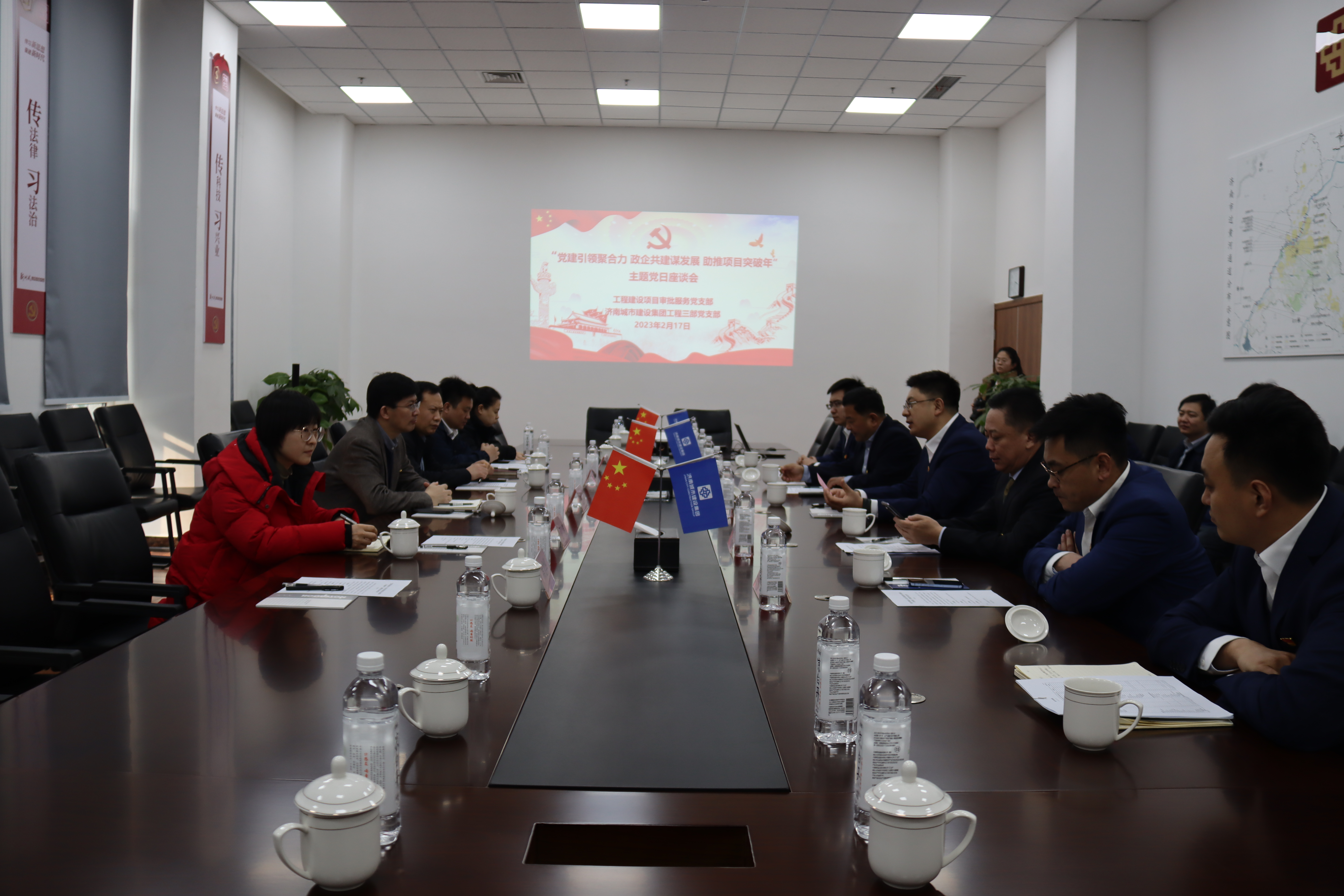 為切實有效發揮黨建引領作用,共建政企雙方搭建交流融合平臺,共促工程建設,2月17日,市行政審批服務局工程建設項目審批服務黨支部與濟南城市建設集團工程三部黨支部組織開展“黨建引領聚合力 政企共建謀發展 助推項目突破年”主題黨日活動。