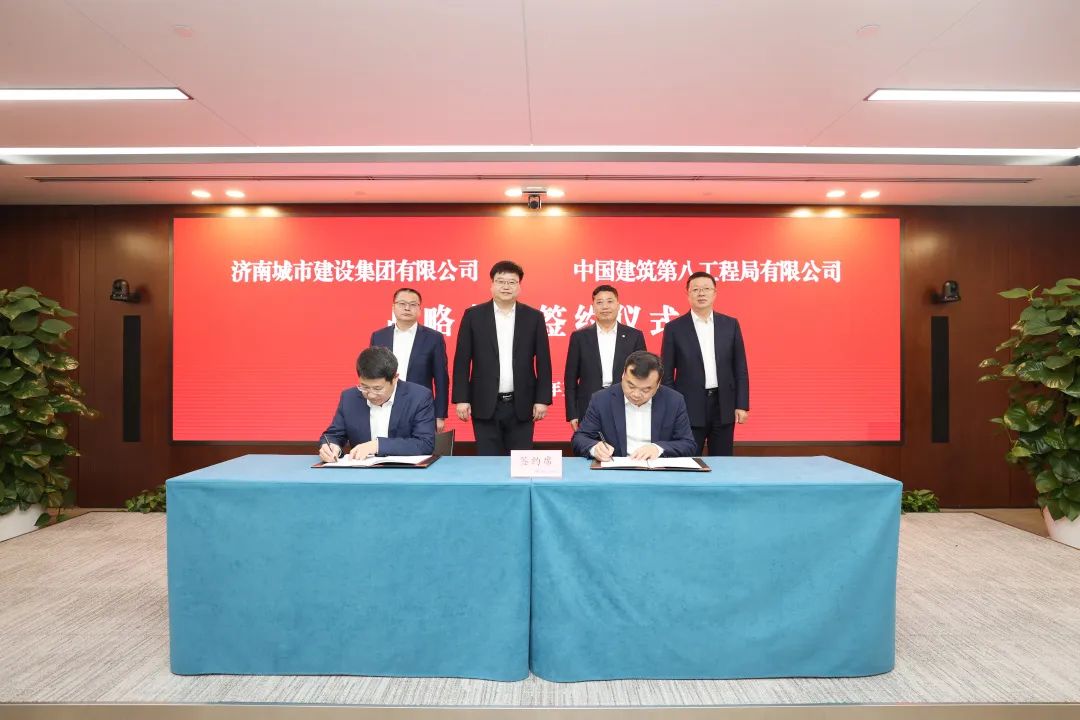在與會領導的共同見證下,劉書冬、張建分別代表中建八局與濟南城市建設集團簽署戰略合作協議。根據協議,雙方將進一步整合要素資源,完善溝通機制,在基礎設施建設、片區綜合開發、城市更新及運營等領域深化合作,共同推進高質量發展和濟南強省會建設。