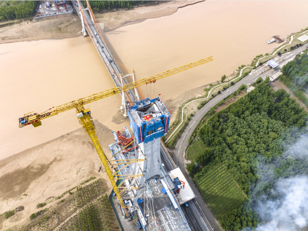 由濟南城市建設集團投資建設,建設集團所屬濟南城建集團公司參與承建的G104京嵐線濟南黃河公路大橋擴建工程主橋為雙塔雙索面公軌兩用鋼桁梁斜拉橋,主跨488米,是黃河上在建最大跨徑公軌兩用斜拉橋。主橋索塔高168.6米,寶瓶形構造,造型新穎、施工難度大、技術要求高。項目部嚴格按照住建部、省、市危險性較大的分部分項工程安全管理規定、危險性較大的分部分項工程專項施工方案編制指南及相關要求,成立技術創新小組、施工部署方案策劃評審領導小組等組織機構,充分調動技術人員積極性、創造性,編制了《索塔專項施工方案》,并成功應用于本工程索塔施工中,達到安全生產、降本增效的目的,為推動項目安全有序建設蓄勢賦能。