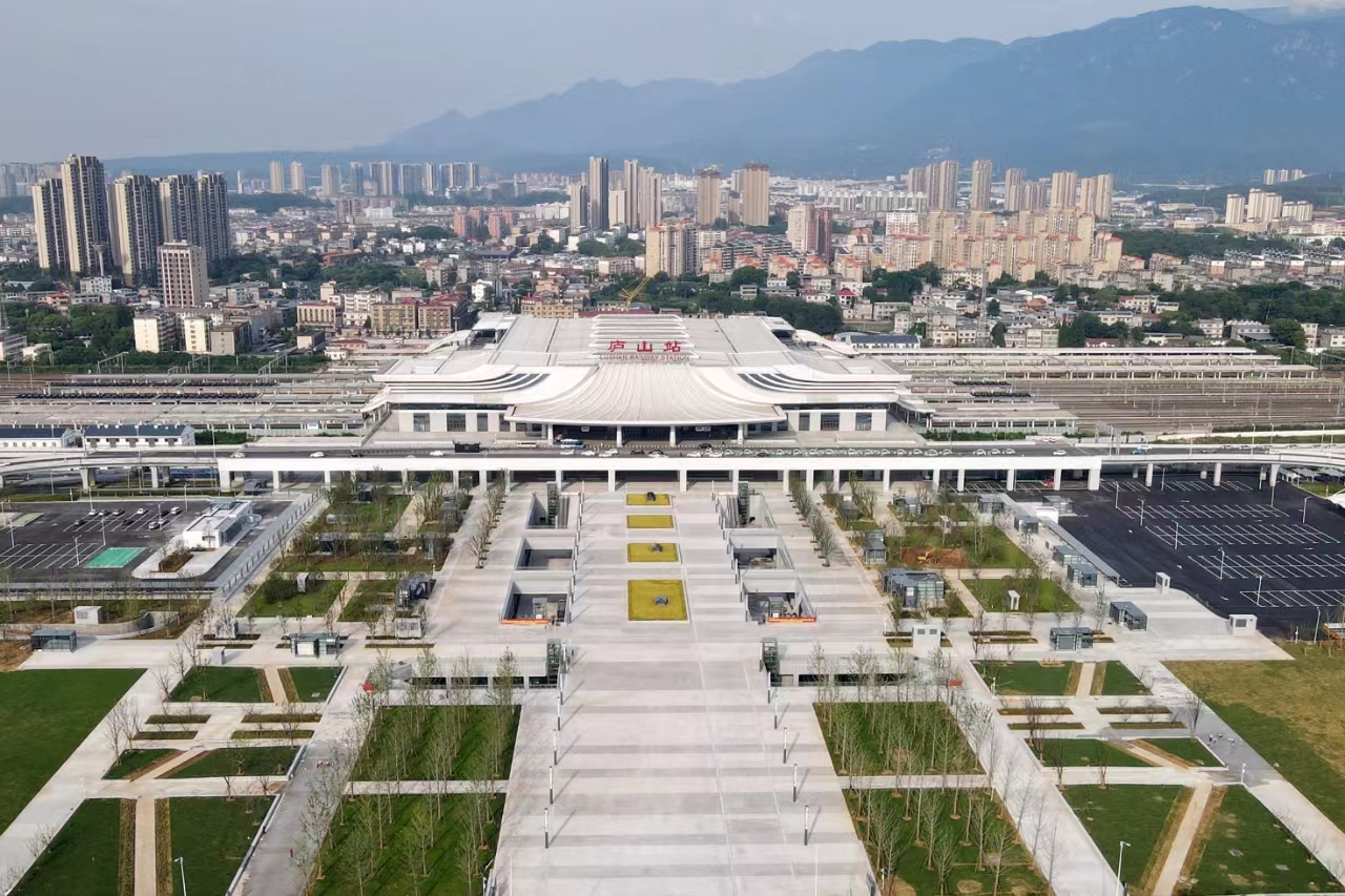 九江廬山站高鐵樞紐被定位為昌九走廊新樞紐、贛北發展新引擎、都市九江新門戶,遠期鐵路旅客發送量將達到約2200萬人次。城建集團公司承建的九江高鐵樞紐工程作為廬山站配套工程,是鐵路與公交客運的聯系紐帶,也是廬山站的交通集散中心。項目建設內容主要包括高架匝道、地面道路、集散廣場和地下空間四部分。其中,高架匝道施工由連接快速路、地面道路與廬山站站房的8條匝道橋組成,總長約3.5公里;地面道路施工包括一橫四縱的五條道路,總長約2.5公里;集散廣場占地約99畝,廣場左側為公交車場站占地面積約18畝,右側為占地約25畝的長途車場站;地下空間共兩層,總建筑面積約為11萬平方米。目前項目高架匝道、地面道路、集散廣場建設均已完成,并開放投入使用。