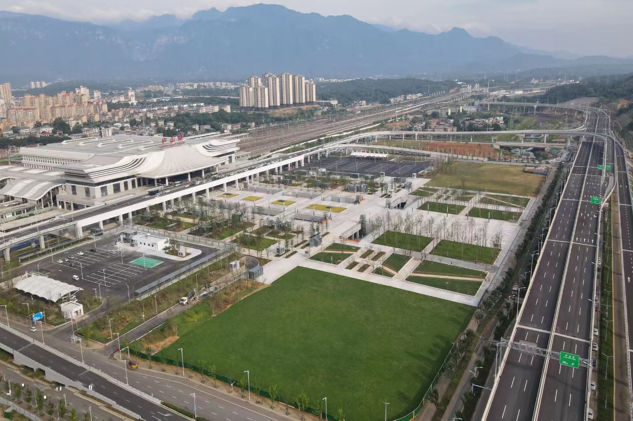 九江高鐵樞紐集散廣場規劃面積約5.7萬平方米,園林綠化面積約1.7萬平方米,工程體量大且施工繁瑣、施工標準要求高。項目部實行“每日現場一碰頭,每周一調度”舉措,在保障質量安全的前提下全力推進施工進度,順利攻克花崗巖材料緊缺、加工周期長等施工重難點,保質保量完成集散廣場各項施工任務,為進一步完善九江市城市交通體系貢獻力量。