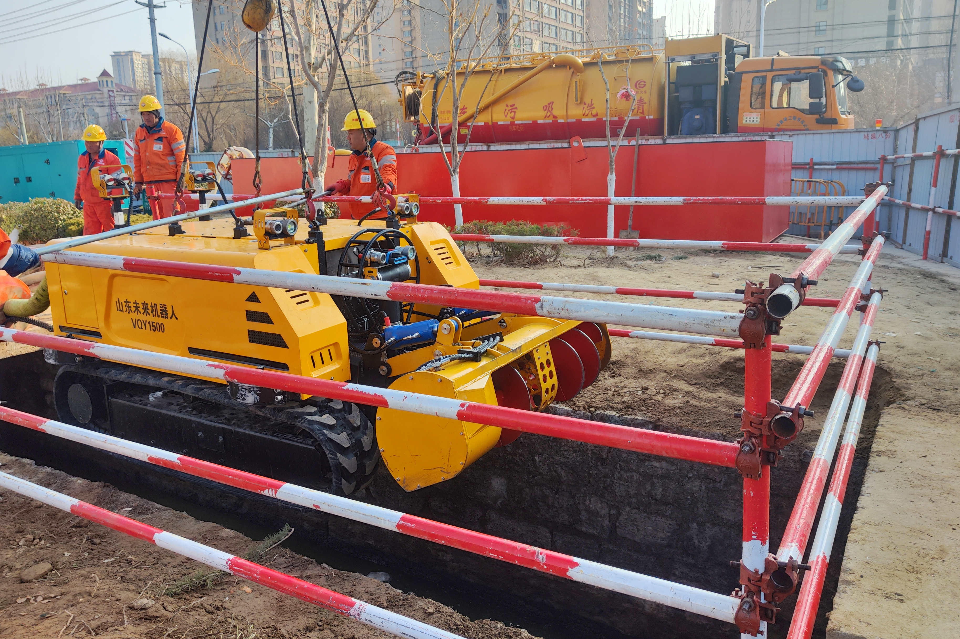雨污分流改造是國家“十四五”城鎮污水處理及資源化利用發展規劃的重要內容,也是城建集團公司在城市基礎設施建設領域的重點業務。城建集團公司在實施城市雨污分流改造工程中,積極開展科技創新,成功研發出水下無人清淤機器人,具備在特殊環境下代替人工進行城市河道、涵洞、暗渠等清淤作業的自動控制功能。技術人員遠程遙控指揮,利用配有照明、攝像、水下成像聲納等觀測設備的水下機器人實現水下作業,然后由清淤車輛把污泥運送至指定地點,完成整套清淤施工作業任務。相比于傳統人工下水清淤作業,水下無人清淤機器人具有“人不下井、路不開挖、水不斷流、泥不落地”技術優勢,極大提升清淤效率,徹底消除人工清淤帶來的安全隱患,助力城市精細化管理,提升城市水環境治理效能。