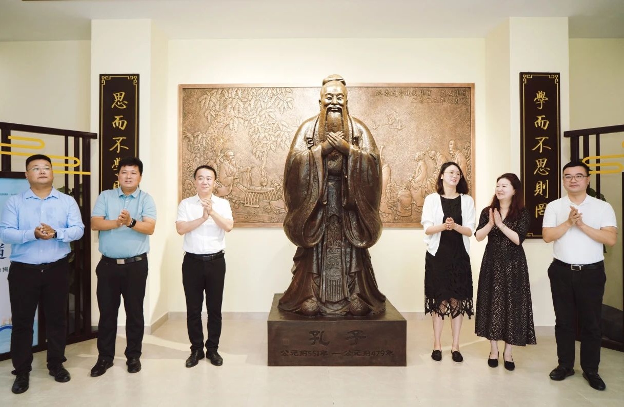 此次捐贈的孔子像由孔子博物館孔子像雕塑大師韓楓制作,銅像雙手交叉于胸前,交疊的手大拇指不露出,象征著為人謙恭有禮,四指并攏未出,則有四海之內皆兄弟的天下大同的象征意義。楊柳春風學校所秉持的“天賦自由 百花競芳”的辦學理念,正是孔子有教無類、因材施教的思想與精神的生動體現,學校推出多門項目化學習課程,將課內與課外融合、書本與實際相連,致力將每一個孩子成長為最好的自己。銅像進駐校園,不僅喚醒同學們內心對中國文化的情感共鳴,更激勵學子們以孔子的智慧與人格比照自己的進步與成長,努力成為誠信、仁愛、堅毅、有為的人。
