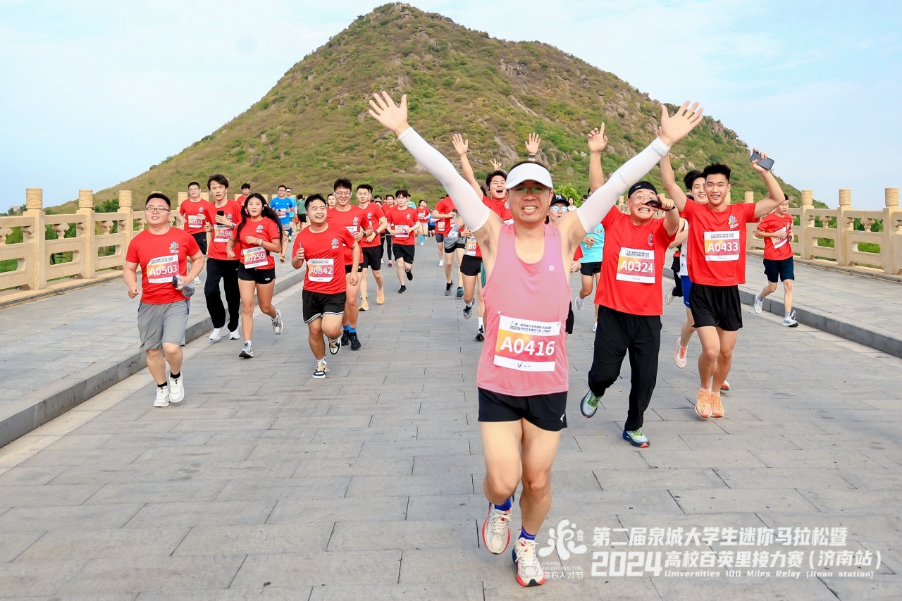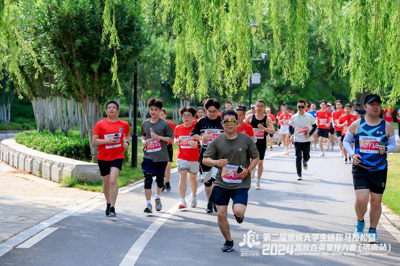 近年來,濟南聚力優化人才發展環境,提升城市軟實力,著力構建亮點紛呈的體育賽事活動體系,開展“國字號”體育品牌創建。本次比賽設置56公里團隊接力和5.6公里個人迷你馬拉松兩個項目,個人項目參賽選手不僅獲得完賽獎牌,還參加現場100份錦鯉的抽取;百英里接力賽前10名的團隊,除了贏取參賽獎金,前四名還將晉級全國總決賽。
