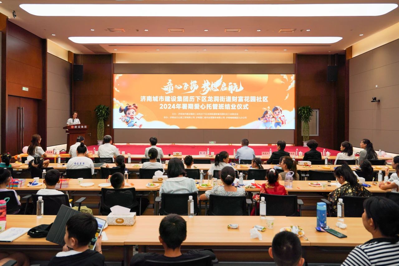 8月29日,由濟(jì)南城市建設(shè)集團(tuán)工會和歷下區(qū)龍洞街道財(cái)富花園社區(qū)工會聯(lián)合會主辦,濟(jì)南金曰公路工程有限公司、濟(jì)南福仁城市運(yùn)營服務(wù)有限公司、濟(jì)南城建集團(tuán)九分公司承辦的“童心飛揚(yáng) 夢想啟航”2024年暑期愛心托管班結(jié)業(yè),市總工會黨組成員、副主席張訊,市總工會女工部部長蘇龍,歷下區(qū)總工會黨組成員、副主席張道珍,龍洞街道黨工委書記付延華,建設(shè)集團(tuán)市管總經(jīng)理助理級干部亓華,集團(tuán)黨群工作部(宣傳與統(tǒng)戰(zhàn)部)負(fù)責(zé)同志參加活動。