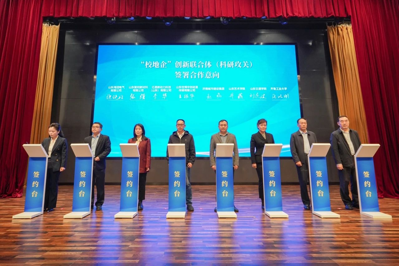 會上,建設集團與齊魯工業大學、山東交通學院、山東藝術學院等7家單位簽訂合作意向書;集團所屬山東金宇信息科技集團有限公司作為“校地企”創新聯合體(科研攻關)成員單位進行路演。
