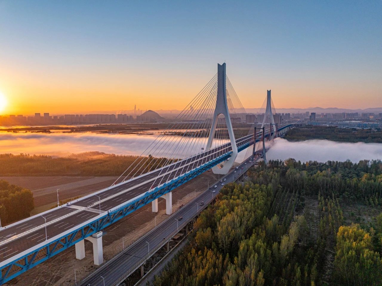 11月23日上午,由濟南城市建設集團投資建設的濟南黃河大橋主線、濟南黃河齊魯大橋同時通車運營。