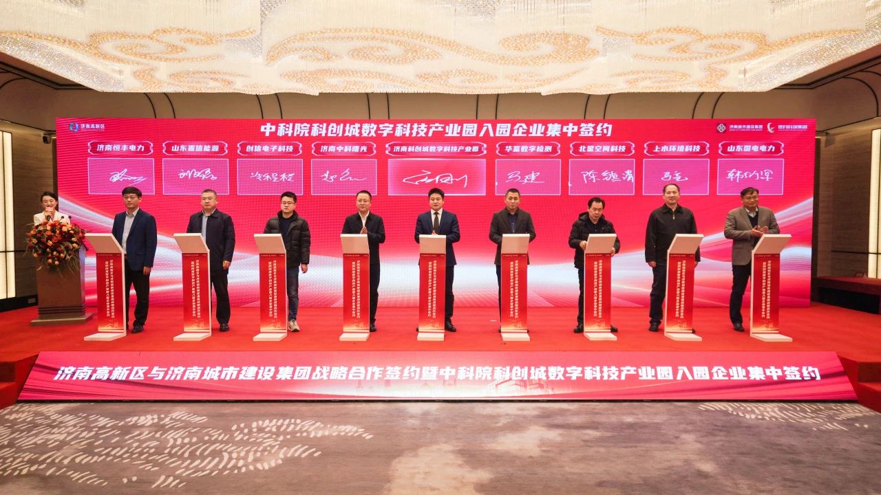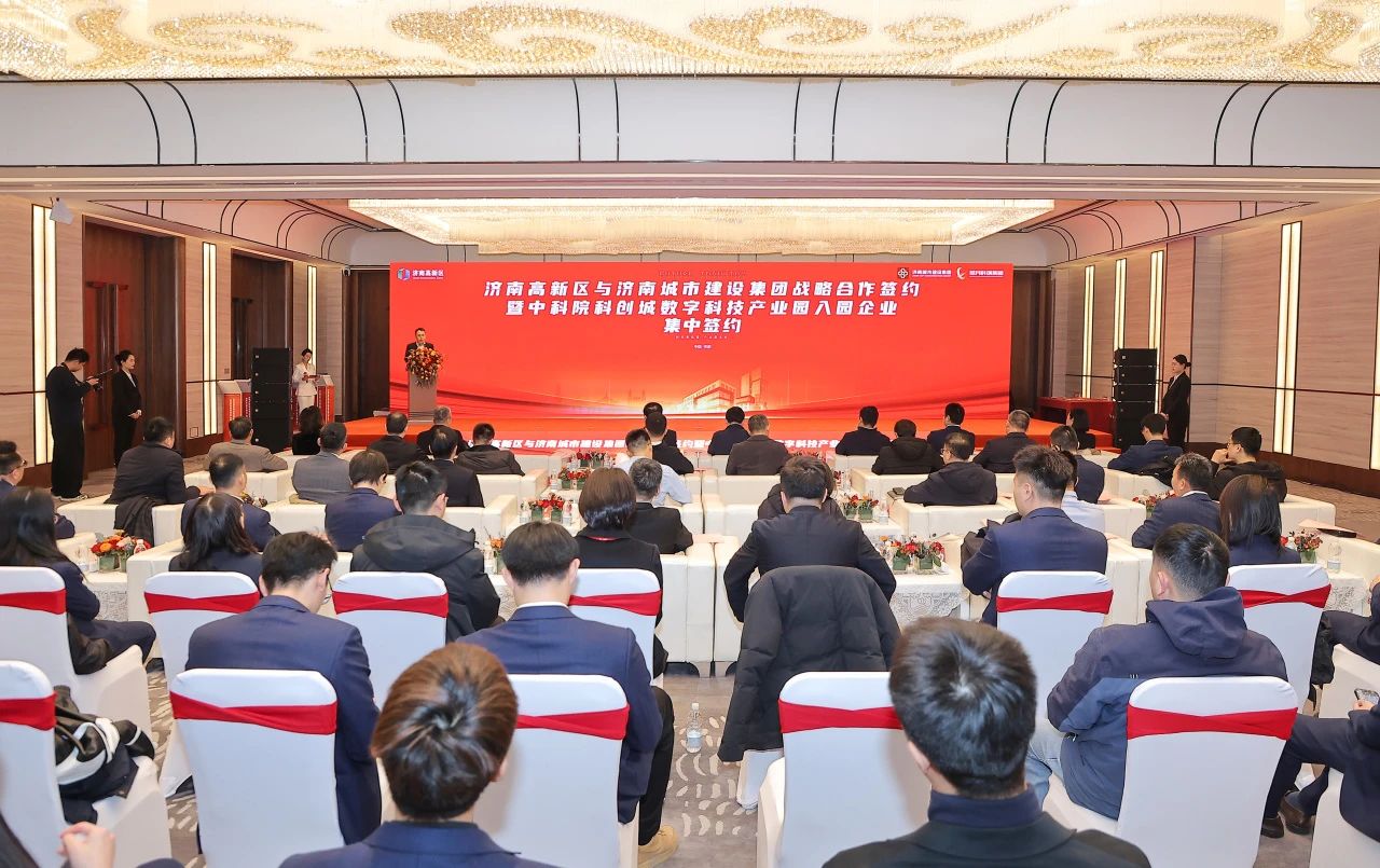 12月25日,濟(jì)南高新區(qū)與濟(jì)南城市建設(shè)集團(tuán)舉行戰(zhàn)略合作簽約暨中科院科創(chuàng)城數(shù)字科技產(chǎn)業(yè)園入園企業(yè)集中簽約活動(dòng)。濟(jì)南市副市長,高新區(qū)黨工委副書記、管委會(huì)常務(wù)副主任任廣鋒出席活動(dòng)并見證簽約。市科技局黨組書記、局長黃波,濟(jì)南高新區(qū)管委會(huì)副主任、濟(jì)高科創(chuàng)投資集團(tuán)董事長兼總經(jīng)理劉松,濟(jì)南城市建設(shè)集團(tuán)黨委副書記、總經(jīng)理?xiàng)罘澹ㄔO(shè)集團(tuán)副總經(jīng)理徐文東參加活動(dòng)。