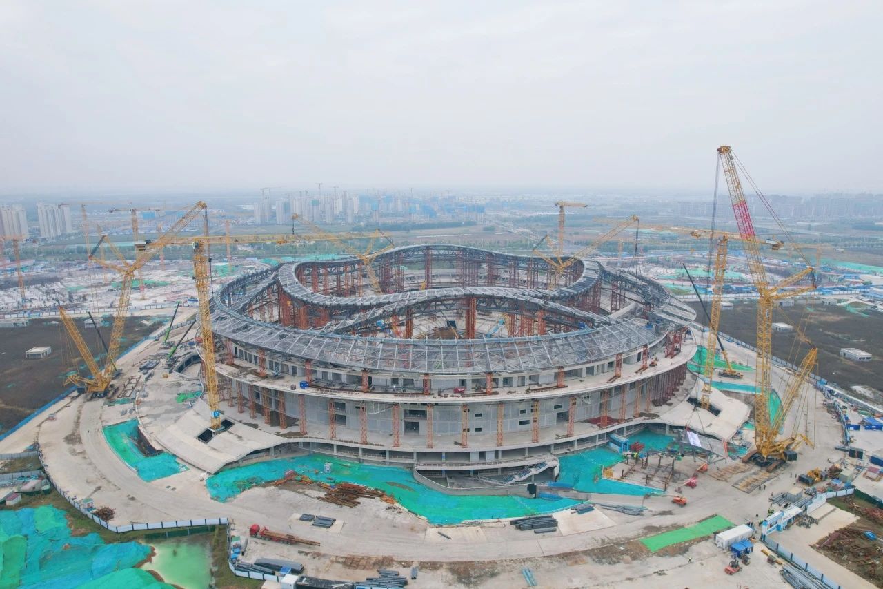 10月21日,隨著最后一榀百噸鋼桁架精準入位,由濟南城市建設集團受委托建設的黃河體育中心專業足球場項目屋蓋鋼結構合攏,標志著屋蓋鋼結構主桁架完成,正式進入屋蓋鋼結構網架施工階段。