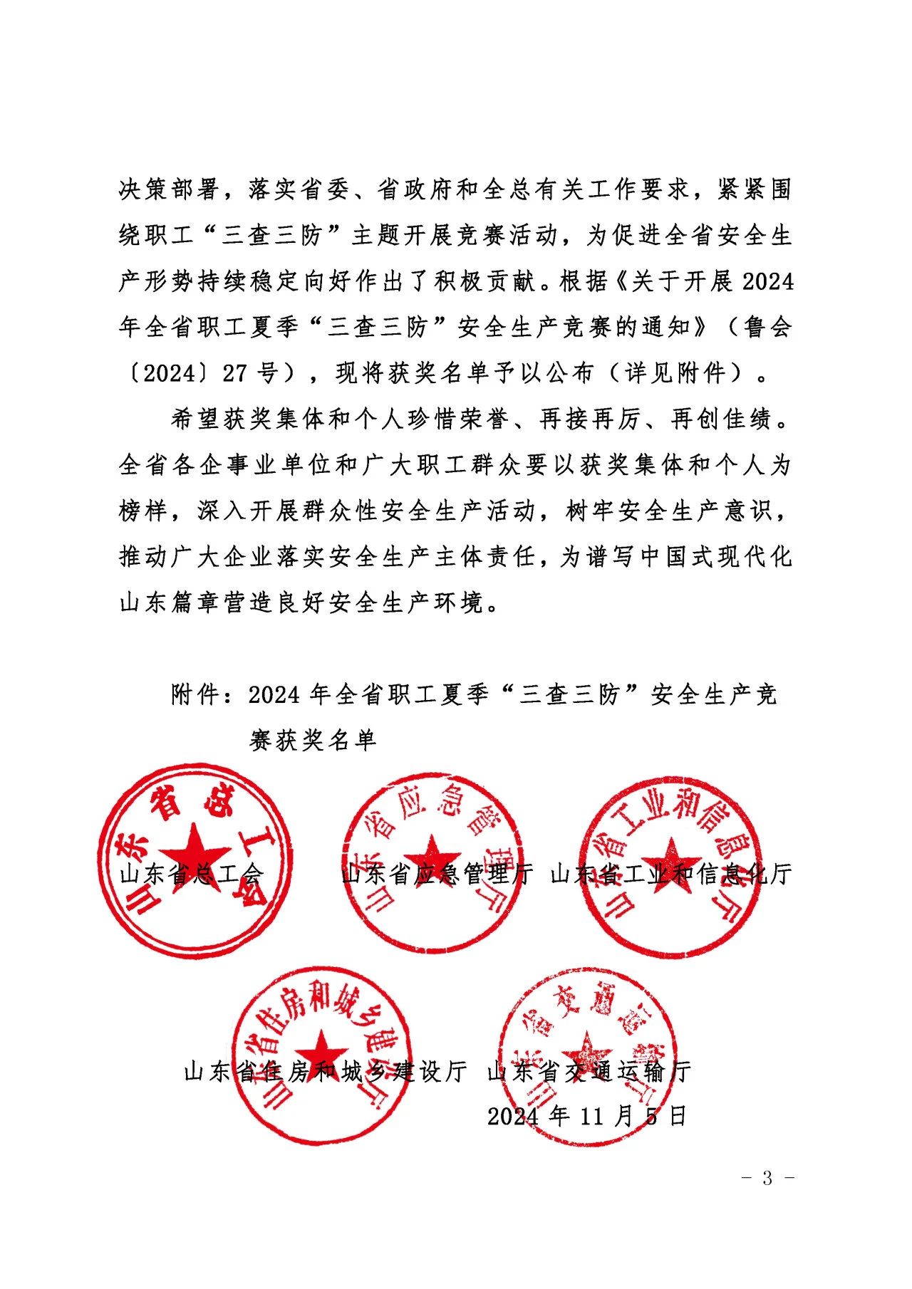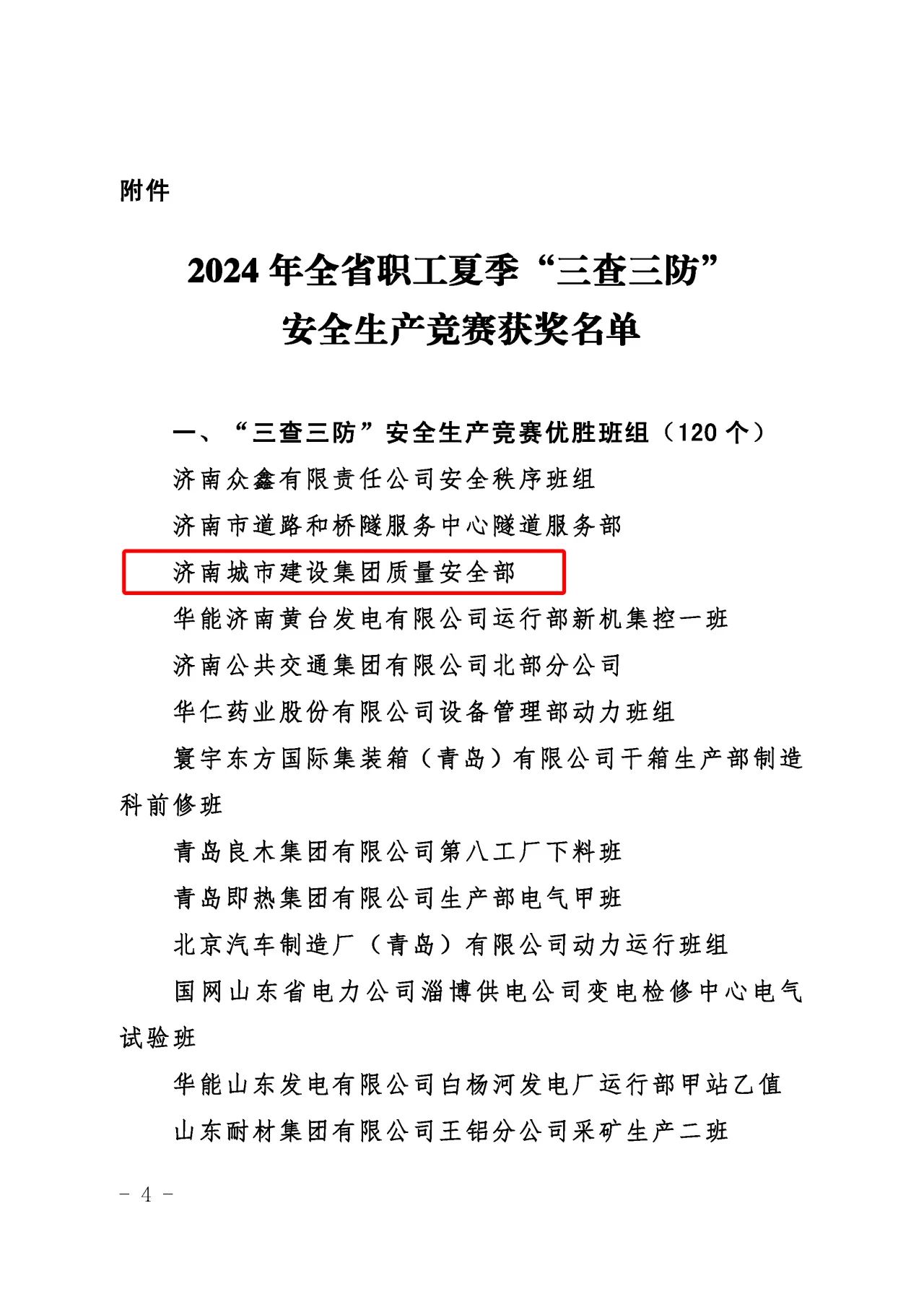 近日,山東省總工會、山東省應(yīng)急管理廳、山東省工業(yè)和信息化廳、山東省住房和城鄉(xiāng)建設(shè)廳、山東省交通運(yùn)輸廳聯(lián)合發(fā)布了《關(guān)于公布2024年全省職工夏季“三查三防”安全生產(chǎn)競賽獲獎情況的通知》,濟(jì)南城市建設(shè)集團(tuán)質(zhì)量安全部積極響應(yīng)上級主管部門的號召,按照集團(tuán)黨委的科學(xué)部署,全面而深入地開展了各項(xiàng)安全專題活動,榮獲“三查三防”安全生產(chǎn)競賽優(yōu)勝班組榮譽(yù)稱號。