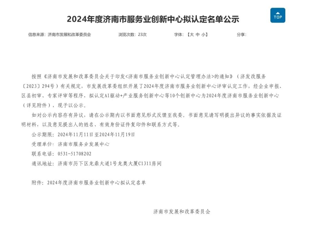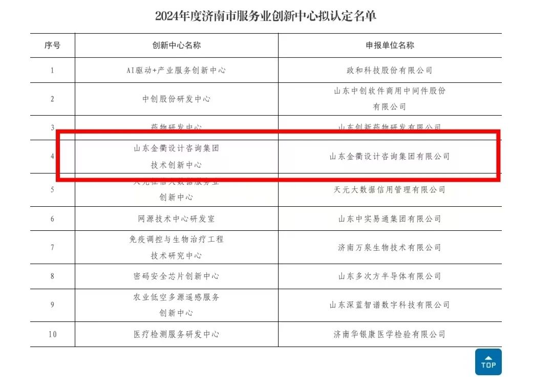 近日,濟南市發展和改革委員會公示《2024年度濟南市服務業創新中心擬認定名單》,建設集團所屬山東金衢設計咨詢集團有限公司技術創新中心獲批2024年度濟南市服務業創新中心。